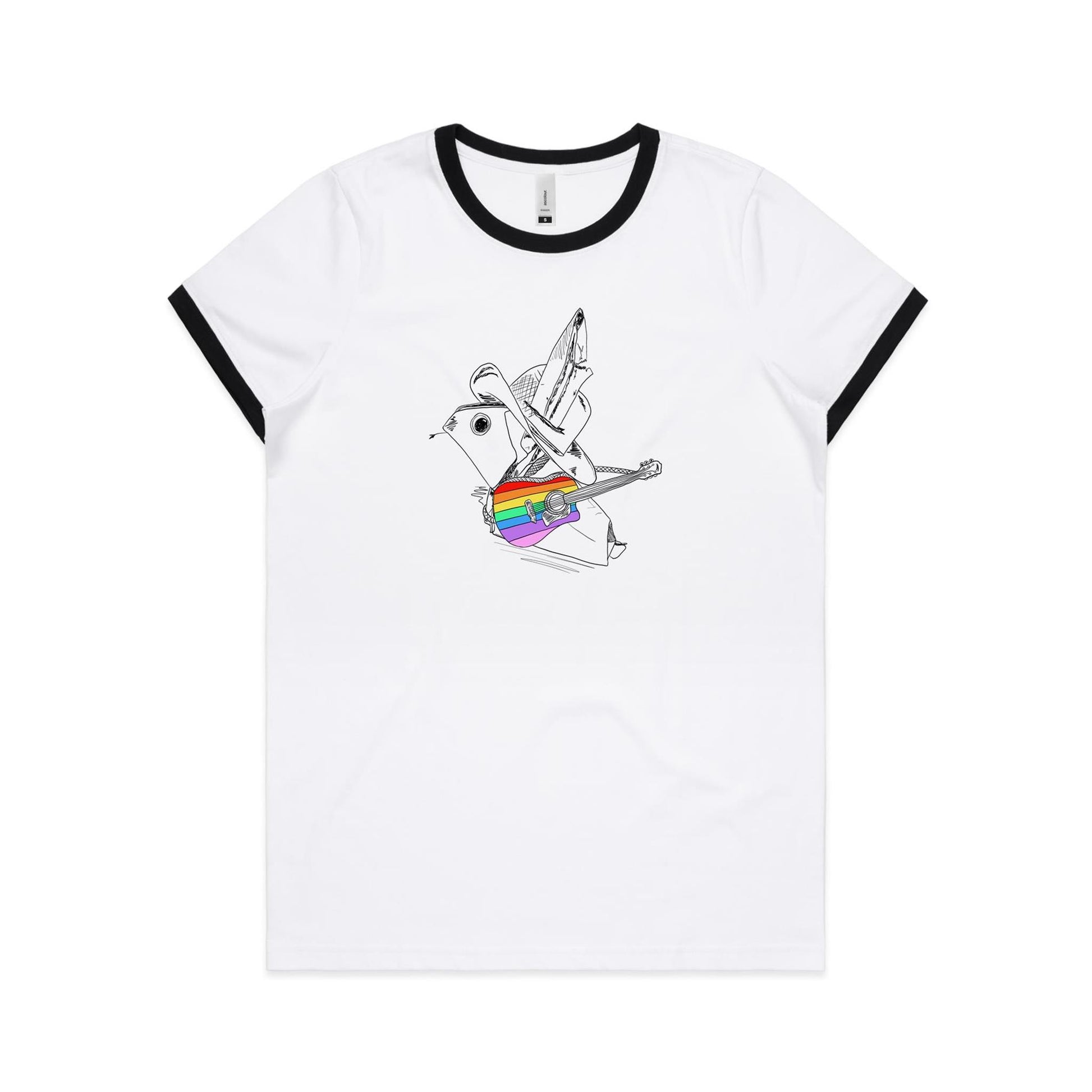 women’s ringer tee origami rainbow cowboy